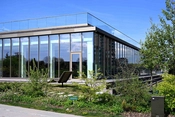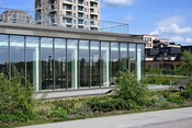 I harmonisk samspil med udsigten til Svanesøen og de fredede naturområder i Bøllemosen er badepavillonen i Frederiksbro opført med store glasfacader og elegant sort tegl. Det arkitektoniske udtryk er med til at understrege bygningens formål – at tilbyde et eksklusivt og afslappende frirum for beboerne i Frederiksbro.