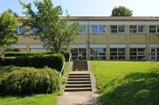 Bygningen består af fire en-etages længer placeret nord-syd, som fortsætter i en toetages bygning placeret øst-vest. De sydvendte vinduer er delvis blændet af hvide felter for at beskytte mod sollyset.