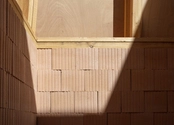 Tækkede Teglblokke er et byggesystem af strå, ler og træ med et lavt klimaaftryk og en lang levetid. Den diffusionsåbne bærende konstruktion er udført i poroton-teglblokke, som er isolerende i sig selv. Muren fores med præfabrikerede tækkede trækassetter, der har en konstruktivt beskyttende og yderligere isolerende virkning. De tækkede elementer er brandsikrede med lerimprægnering og brandhæmmende adskillelser.