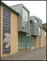 Indgangen til Kulturhuset sker fra den rolige H.Jensens Stræde. To paddehatte danner en beskyttet overdækning mellem H.C. Andersen Museet og Fyrtøjet.