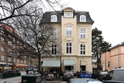 Karakteristisk for Smidths beboelsesejendomme er der karnapper og mansardtag. I stueplan er der erhvevslejemål i form af butikker og café.