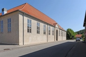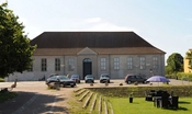 Foran indgangen står en statue af Anker Heegaard (1815-1893 fabrikant, som grundlagde den civile produktion i Gjethuset).