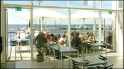 Museets cafeteria udnytter stedets beliggenhed optimalt.