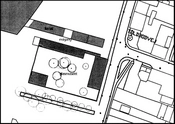 Det oprindelige museum, Toldbygningen, ses th. på planen.