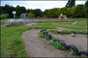 Legehuse måske inspireret af den nærliggende vikingelandsby på Kalvøen. Udendørsfaciliteterne er der gjort meget ud af. Crossbaner for de større børn samt svævebaner foruden de traditionelle boldbaner.