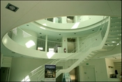 Det centrale hovedrum er forudsætningen for bygningens naturlige ventilation, hvor frisk luft strømmer ind ad automatisk oplukkelige vinduer langs periferien og op gennem det store rum for at blive lukket ud via ovenlysene.
