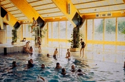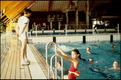 Overvågning af børnebassinet. I baggrunden udspringstårne.