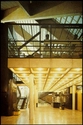 Et lavere loft med overliggende restaurant formidler overgangen mellem ude og inde.