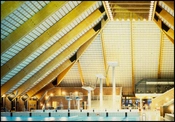 Arkitekterne har gjort meget ud af proportioneringen og geometrien i svømmehallen, der er udformet som en pyramidestub med en rektangulær grundplan.
