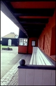 Mod det nu nedlagte jernbanespor krager taget beskyttende ud over ventende passagerer i den hvidmalede bænk. Og til stationsforstanderen har huset en karnap med optimale oversigtsforhold.