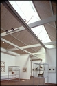 Indtryk fra udstillingsbygningens indre. Med lukkede facader og et enkelt ovenlysbånd i kippen søger tilbygningen at underordne sig de ældre stationsbygninger.
