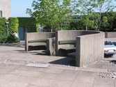 Kirken er placeret på en lille høj hvor den pladsstøbte beton får den til at virke næsten uindtagelig. Det fritliggende klokketårn er opbygget som et stålgitter beklædt med eternit og facaderne på menighedshuset fremstår primært i beton.