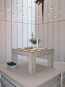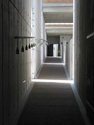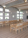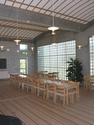 Alteret og det introverte kirkerum oplyses af store ovenlys kombineret med mange, små frithængende armaturer.