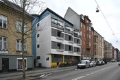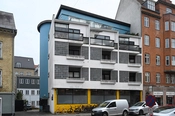 Ejendommen indeholder otte lejligheder med adgang via et trappetårn og svalegangen på husets bagside. Huset er opført som en betonkonstruktion med bærende tværvægge. Det tidligere postkontors facade i stueetagen er beklædt med gule fliser, mens huset i øvrigt er hvidmalet mod gaden. For at optimere dagslyset i lejlighederne er en del af facaden udført i uindrammede glasbyggesten.