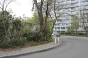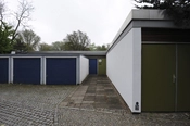 Svinget ved garagerne set fra sydøst med Malmö arkitekterne Fritz Jaenecke og Sten Samuelsons bygning i baggrunden.
