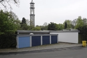 Garagerne set fra nordøst med tårnet til Kaiser-Friedrich-Gedächtniskirche i baggrunden.