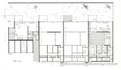 Arne Jacobsens bidrag er fire sammenhængende atriumhuse med flade tage. De tre største huse på 140 kvadratmeter ligger med facaderne ud mod vejen, mens et mindre hus ligger tilbagetrukket bag et garageanlæg, hvor vejen svinger. Facaderne mod vejen, som vender mod nord, er uden vinduer men bærer trods alt nogle af arkitektens karakteristika med de blå hoveddøre, olivengrønne vægpaneler kantet af aluminiumslister og teaktræsriste under taget til udluftning. Hvert hus omslutter et atrum, som har opholdsrummene rettet mod sig. Desuden har husene en indelukket gårdhave.