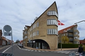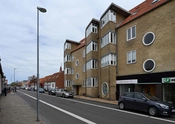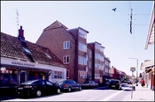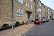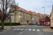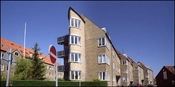 Den østlige boligstok set fra Byledsgade fortandes for at tilpasse sig gadeforløbet.