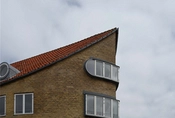Med sin tilspidsede hovedform og runde vinduer er der noget umiskendelig skibsagtigt over bebyggelsens to sydgavle.