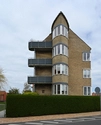 Boligbebyggelsen er formet i tegl efter den funktionelle tradition og tilført et stænk af noget maritimt med de tilspidsede, stævnlignende sydgavle.