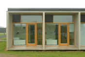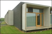 Hvert kollegieværelse har et større glasparti indrammet af en betonkassette.