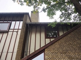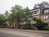Skolen kendetegnes ved fint detaljerede facader med gule gavle i tegl, og lette facadepartier i eternit med ornamental brug af trælister, som strukturerer facaden. Ud for gymnastiksalene er placeret svalegange med tremmer i samme listebredde.