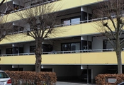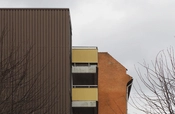 De seks etagers beboelse har altangange mod gården og altaner mod gaden. Facaden er karakteristisk med de gule inddækninger af altanerne, hvorimod resten af bygningen er beklædt med brune plader.