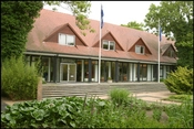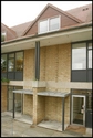 Den gennemgående trappe og de store tagkviste præger bygningens hovedfacade mod Hasserisvej.