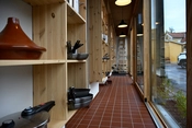 Bygningen rummer undervisningskøkken, aktivitetsrum, klasseværelse, værksted og taghaver – hvor børn kan få jord under neglene midt i byen. Som et grønt laboratorium danner huset, rammer for læring, fællesskab og bæredygtighed med fokus på mad, natur og håndværk.