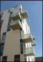 Huset afsluttes med ståldragere der virker rumdannende hen over penthouselejlighederne. Hvert punkthus består af 49 lejligheder.