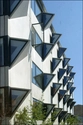 Inspireret af karnapperne på de traditionelle Frederiksberg lejligheder har KHR designet en geometrisk formet karnap, som skaber en ekspressiv og dynamisk facade. Karnapperne er placeret over gulv, så de giver luft i kollegieværelserne og skaber en anderledes rumlighed."