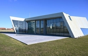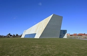 Hellig Kors Kirke rejser sig i landskabet som en monolit, og er en unik moderne kirke, der udnytter kompositmaterialets særlige egenskaber på smukkeste vis.