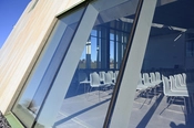 Det gennemskinnelige kompositmateriale kan få bygningen til at lyse som en lanterne om natten.