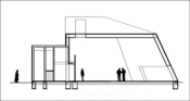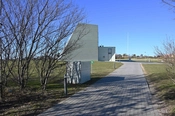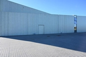 Hovedindgangen er placeret i den smalle udskæring midt på bygningen.