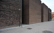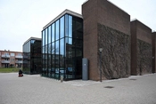 Der er brugt et begrænset antal forskellige byggematerialer med hovedvægten på brune mursten, betondragere, bronzefarvet glas og bronzefarvet metal i form af metalsprosser, nedhængte metallofter og radiatorer.