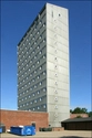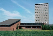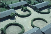 Skolens ankomstareal set fra højhuset. I de lave bygninger er indrettet lærerboliger.