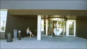 Forbindelsesgangen til rådssalen går langs kantinens ydervæg.