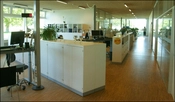 Der er en klar opdeling mellem den offentlige zone i stueetagen og arbejdszonen hvortil kun medarbejdere har adgang.