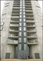 Trappe- og elevatortårn er udført i sorte, indfarvede betonelementer.