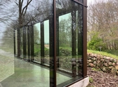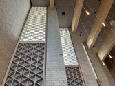 Det store kvadratiske kirkerum kan tilpasses begivenheder og graden af intimitet kan varieres. Døbefonten i midten er det eneste faste inventar og danner således et naturligt centrum i rummet, hvorfra der er kig til skoven, kirketårnet, kirkegården og det eksisterende kirkecenter, der er er forbundet til kirken. Ærlige og enkle materialer som tegl, eg og messing skaber en værdig og rolig ramme om de kirkelige handlinger.