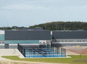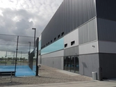Indvendigt er der svømmehal med varmtvandsbassin og svømmebaner på enten 25 meter eller 50 meter, ketchercenter, squashbaner, tennisbaner, to håndboldbaner og en multihal. For at gøre byggeriet letere er der udført lavdelinger i facadekonstruktionen af bølgede Sinus facadeplader øverst og fibercementplader på de nederste ca 2 meter. For at ybryde facaden yderligere er der isat plader af polycarbonat i facaden.