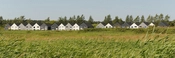 Bygningerne er udført i en trækonstruktion, der inderst har to lag gipsplader og yderst farvede Rockpanel plader.