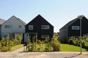 Mod syd ligger bebyggelsen ud til et naturområde. Her har husene baghaver med terrasser.