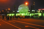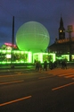 På pladsen var opbygget en 20 meter høj globus. Flere projektorer lysete globusen op så den fremstod som en funklende model af jorden midt i decembermørket.