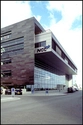I forhold til ankomstvejen fra vest bemærkes at fjerde etage er trukket ud som en skuffe - og bruges som blikfang for firmaets logo og til at skygge for det underliggende atrium.