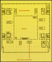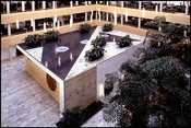 I bunden af atriet findes et større auditorium hvor hensigten med vandbassin på taget og strømmende vand på siden er at eliminere uvedkommende støj.