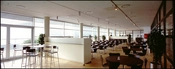 Under den delvis overdækkede terrrasse på øverste etage har de ansatte en glimrende udsigt over indsejlingen til København.
