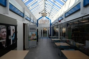 Det næsten 1000 kvm store lokale er fordelt på tre indskudte længehuse hvoraf de to af længerne er forbundet med et gangareal med rytterlys. Gangen fører ud til indgangspartiet der ligeledes er i glas. Bygningen er opført som trækonstruktion i limtræ på et støbt betongulv.