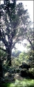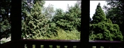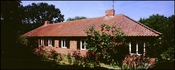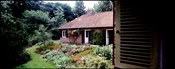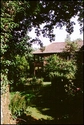 Udsigt mod den tætte, efterhånden fuldvoksne vegetation omkring bungalowen. Navnet kommer af Bangla - et hus fra Bengalen, og som hustype er bungalowen karakteriseret ved stærkt udkraget tag med relativ lille rejsning.