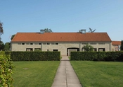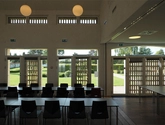 De mønstermurede facader giver afskærmende effekt, så bygningen respekterer roen og den uforstyrrede stemning på det store kirkegårdsareal. Indefra opleves bygningen åben, lys og venlig.